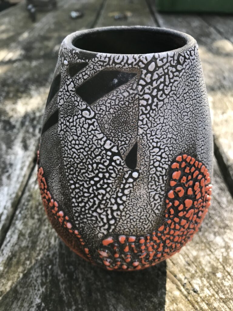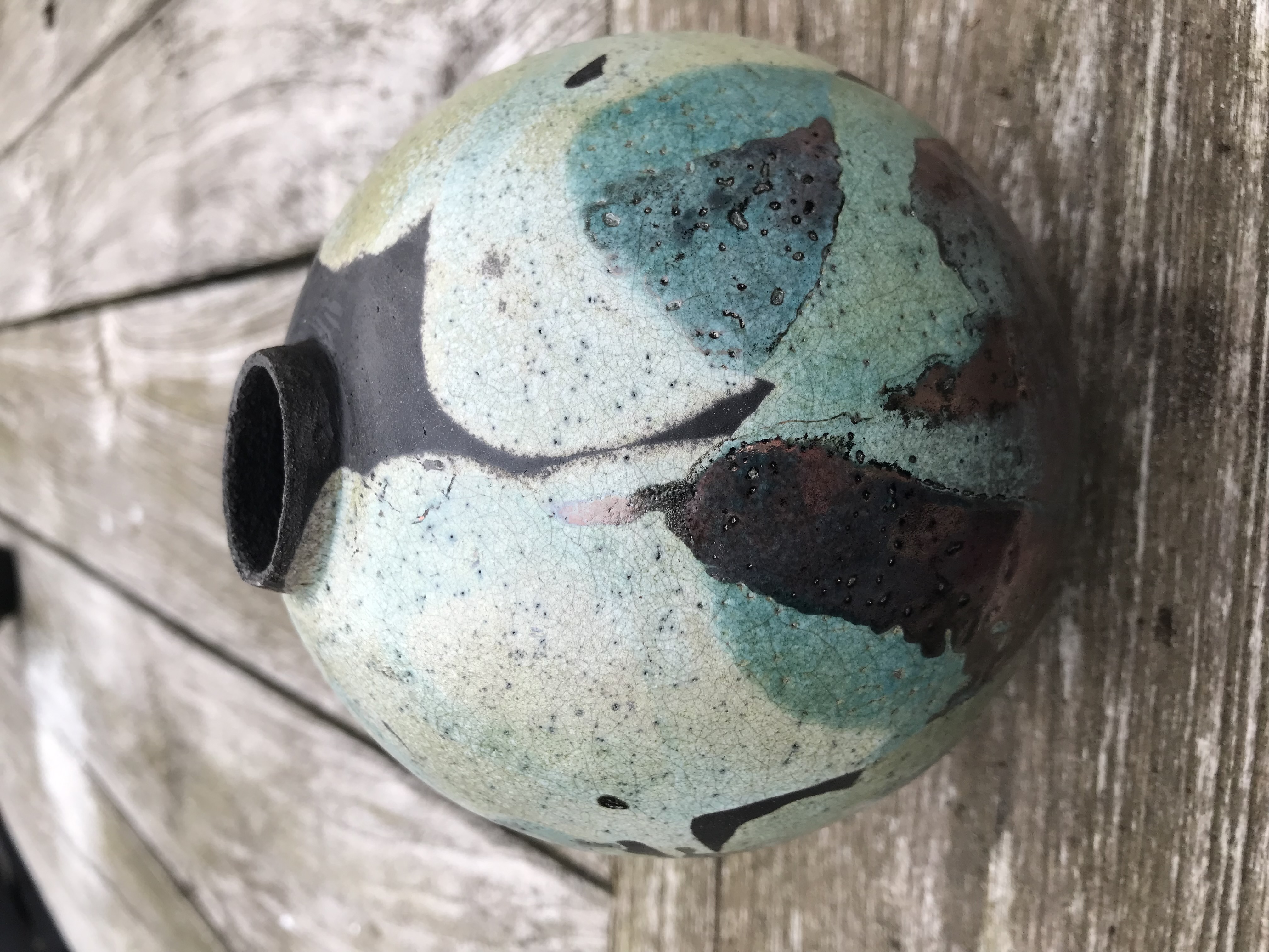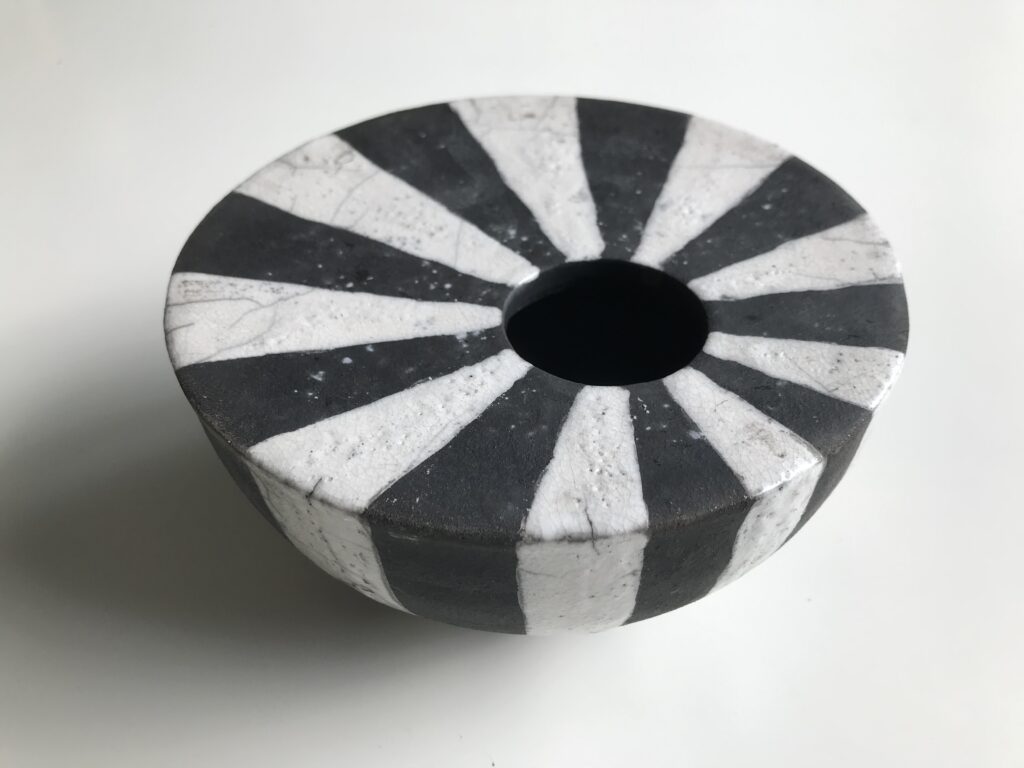 Raku is een spannende stooktechniek die zijn oorsprong vindt in Japan in de 16e eeuw en is nauw verbonden met de Japanse theeceremonie. De techniek staat bekend om haar directe, fysieke karakter en het onvoorspelbare resultaat. Tijdens het raku-stoken wordt het object bij lage temperatuur gestookt (950-1000 graden C) en vervolgens gloeiend heet uit de oven gehaald. Door het werk vervolgens bloot te stellen aan lucht of rokende materialen ontstaan unieke effecten zoals craquelƩ, rooksporen en metaalachtige glazuren.